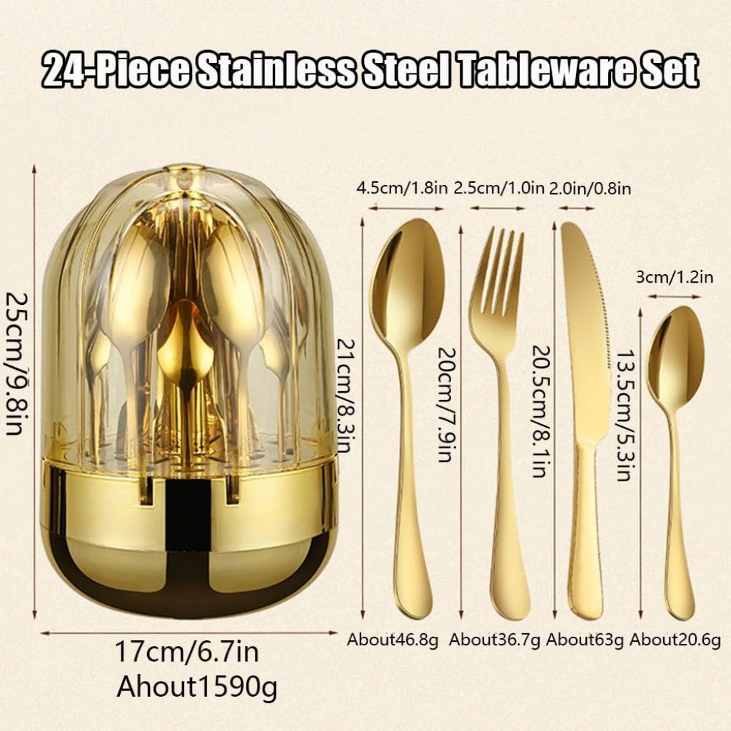 Service pour 6 Personnes – خدمة لـ 6 أشخاص : L'ensemble comprend 24 pièces : 6 couteaux, 6 fourchettes, 6 cuillères à soupe et 6 cuillères à café, parfait pour les repas en famille ou entre amis.