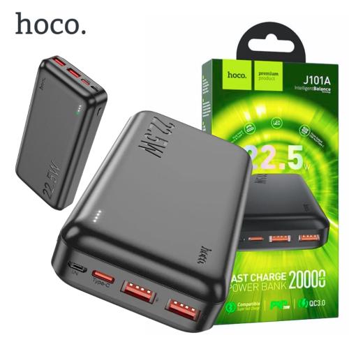Power Bank J101A HOCO, il contient deux ports de sortie USB-A, d’un port d’entrée micro-USB pour chargeur et d’un port USB-C pour une charge rapide et efficace. Avec une capacité de 20 000 mAh.