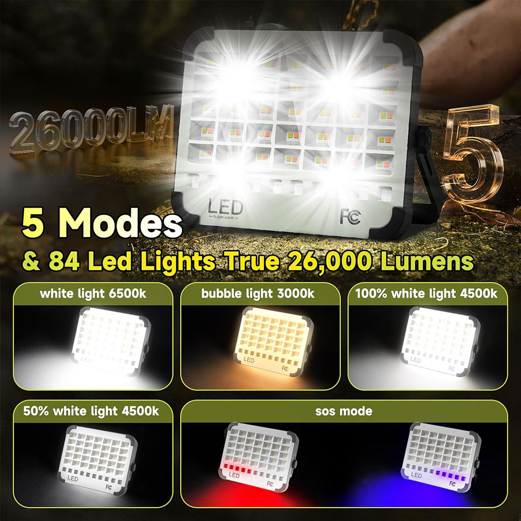 يحتوي على 84 لمبة LED مطورة توفّر إضاءة قوية تصل إلى 26000 لومن، مع 5 أوضاع تشغيل: