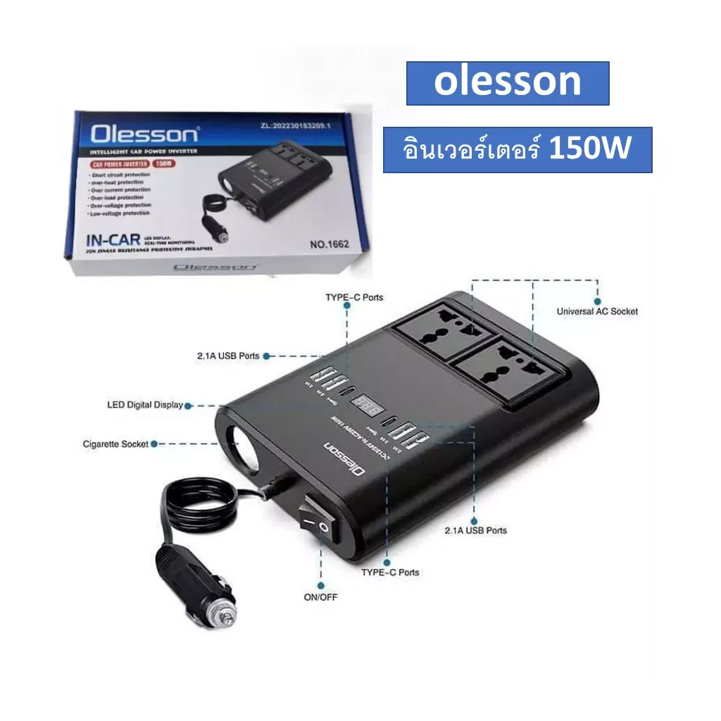 Onduleur de tension de 12v à 220v, d’une puissance de 150w. Il dispose de 4 ports USB et de 2 entrées de type C. Il peut être utilisé pour charger des batteries, des ordinateurs portables, des palmiers, des MP3, etc. dans la voiture. Se branche directement sur l’allume cigare.