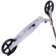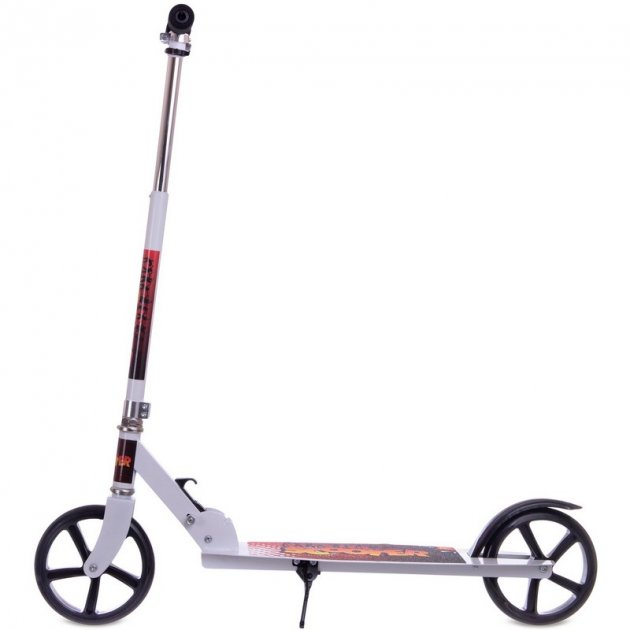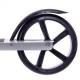 Le cadre de ce scooter est fabriqué en aluminium (métal) durable de qualité industrielle. Il est monté sur des roues en polyuréthane résistant à l’usure dont le diamètre (200 mm) permet de développer une vitesse très correcte. Dans le même temps, le plateau bas aide à maintenir l’équilibre, et les amortisseurs sur les fourches avant et arrière réduisent les vibrations et assurent une conduite en douceur. Pour un arrêt d’urgence, un frein à pédale est situé au-dessus de la roue arrière. Le mécanisme de pliage et le pied de support pliable simplifient grandement le fonctionnement du scooter.