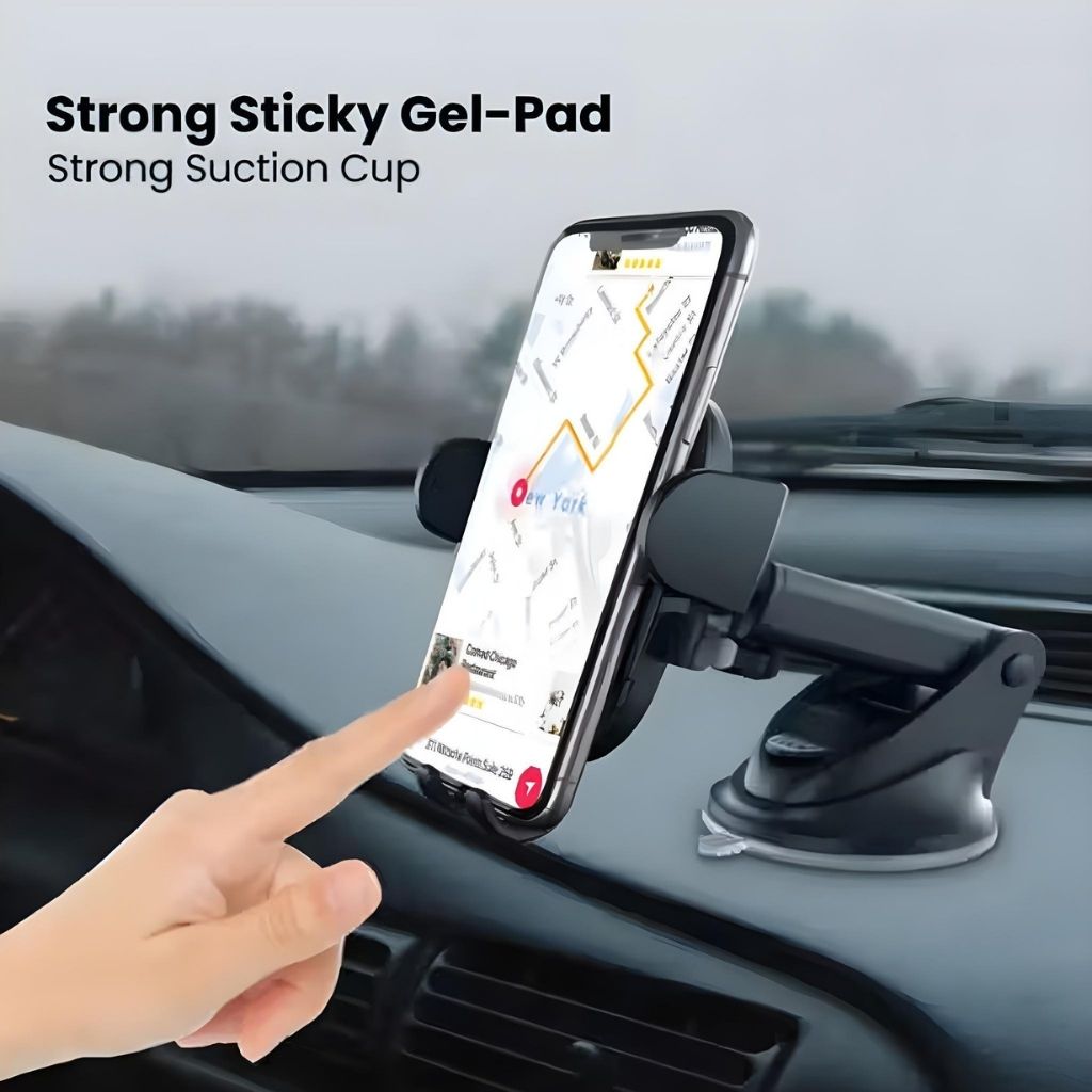Ventouse Puissante : Équipé d'une ventouse robuste pour une fixation sécurisée sur le tableau de bord ou le pare-brise, garantissant une stabilité même sur des routes accidentées.